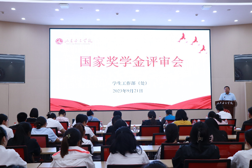 9月21日下午,学校在求真楼一楼报告厅召开了2023年国家奖学金评审会。会议由学生工作部(处)负责人主持,奖学金评审委员会成员担任评委。