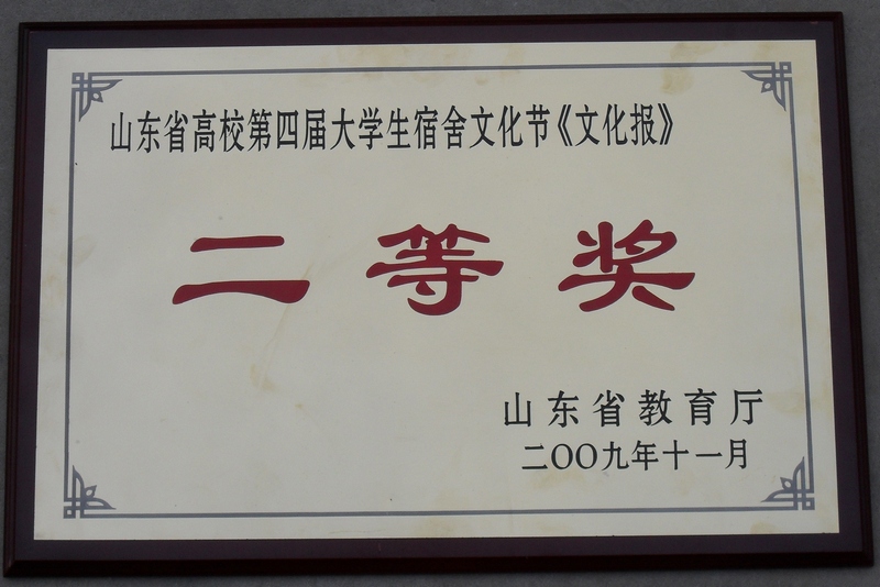 我院在本届文化节中共获得4个集体奖,6个单项奖。DV光盘展示荣获文化节巡礼类一等奖;宿舍文化建设成就展板荣获展板类一等奖;大学生宿舍文化报《芳苑》荣获宿舍文化报类二等奖;教育学院选送的由宋晓霞老师指导的小合唱《踏雨》荣获原创类特等奖;会计学院选送由付晓丹老师指导的的手语操《女院欢迎你》获原创类二等奖;会计学院田燕娜《我的宿舍情怀》、管理学院张兵兵《家的旋律》荣获征文类二等奖,会计学院刘慧轩《宿舍,我的小家》荣获征文类三等奖;学生工作处颜涛老师荣获山东省高校第四届大学生宿舍文化节优秀指导奖。同时,我院荣获山东省高校第四届大学生宿舍文化节优秀组织奖。