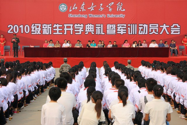 9月14日上午,我校2010级新生开学典礼暨军训动员大会在长清校区操场隆重举行,全体新生在庄严的国歌声中,开启了大学生活的新篇章。学校党委书记孙秀丽,党委副书记、院长范素华,党委副书记、纪委书记宿建沛,副院长常立学、王淑霞、宋兆静、赵胜村,解放军71939部队副政委秦公洪及各部门、单位负责人出席了开学典礼。典礼由副院长王淑霞主持。