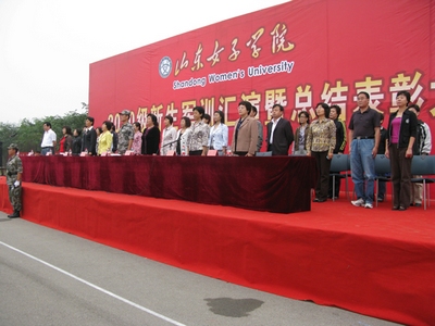 9月21日, 我校2010级新生军训汇报表演暨总结表彰大会在大操场隆重举行。党委书记孙秀丽,党委副书记、院长范素华,党委副书记、纪委书记宿建沛,副院长王淑霞、宋兆静、赵胜村出席大会,中国人民解放军71939部队领导,各处室、单位负责人,军训教官,辅导员及2010级全体新生参加了大会。