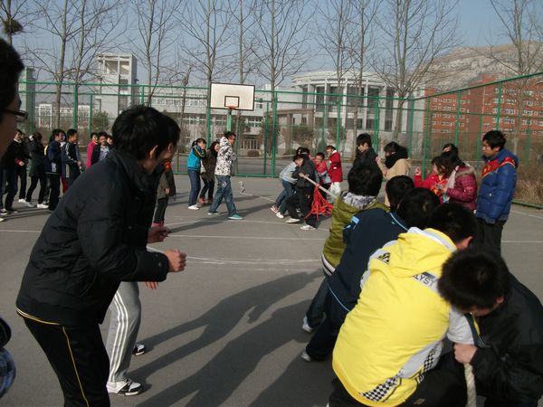 12月9日下午,“趣味体育,飞扬青春—第五届大学生宿舍文化节跳绳拔河比赛”在学校篮球场举行。