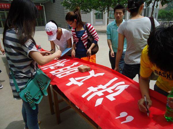 为切实加强大学生的思想政治教育,提高学生文明素质,倡导文明礼仪之风,推动校园精神文明建设,创建和谐校园,学生工作处于5月16—6月16日开展“共创优良学风校风,文明礼仪伴我成长”文明礼仪活动月。“讲文明礼仪,创和谐校园” 大型签名宣传活动, 得到了广大同学的积极响应,同学极踊跃参加,表现出对活动的极大热情和支持,在横幅上郑重地签下了自己的名字,同时签下的还有一份责任和义务。同学们纷纷表示,要从现在做起,从一点一滴的小事做起,自觉规范自身言行,展现出当代大学生良好的精神风貌,创建优良学风、校风。