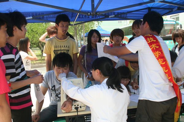 在学校食堂南门前,大学生们挽起袖子,毫不犹豫地加入到献血的队伍当中。信息技术学院青年志愿者在现场向同学们发放宣传材料,讲解献血注意事项。同学们不畏酷暑,积极参加无偿献血,登记、量血压、查血型、化验……现场气氛热烈而有序。小周同学说:“我觉得自己能够以这种方式回报社会很高兴,因为从小学到中学再到大学,我们一直在享有社会给予我们的资源,特别是今年我还获得了国家助学金帮助我完成学业,我愿意以这种方式为社会尽一份力,因为奉献也是一种幸福,能够体现我作为公民存在的义务和责任。”