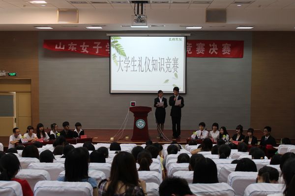 为迎接山东女子学院60周年校庆,弘扬中华民族礼仪之邦的传统美德,促进和谐校园建设,5月17日下午,由学生工作处、旅游学院主办的“迎校庆、倡文明、展学风”系列活动之四——“礼仪文化•和谐校园”礼仪知识竞赛决赛在图书馆一楼报告厅隆重举行。