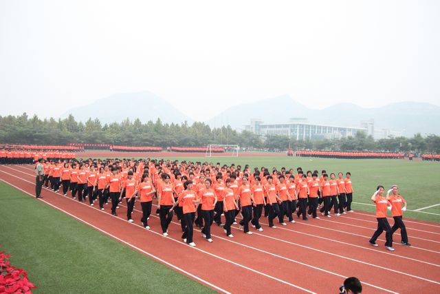 9月21日上午,我校2012级新生军训汇报表演暨总结表彰大会在田径场隆重举行。校领导孙秀丽、范素华、宿建沛、宋兆静、赵胜村、汪琦及中国人民解放军71939部队指导员刘勇出席了大会,各学院、各部门负责人,军训教官及2012级全体新生参加了大会。大会由副院长宋兆静主持。