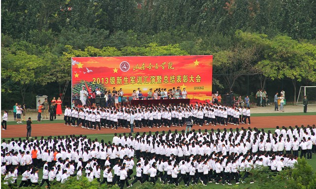9月14日上午,我校2013级新生军训汇报表演暨总结表彰大会在田径场隆重举行。全体校领导、71939部队承训教官、相关部门单位负责人,带队辅导员班主任以及2013级全体新生参加了大会。大会由副院长王淑霞主持。