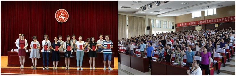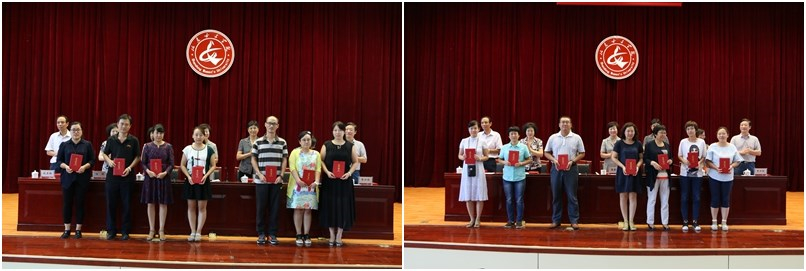党委副书记宿建沛宣读表彰人员名单,希望受表彰的教师珍惜荣誉,再接再厉,努力做出新的贡献。全体校领导为受表彰教师颁奖。