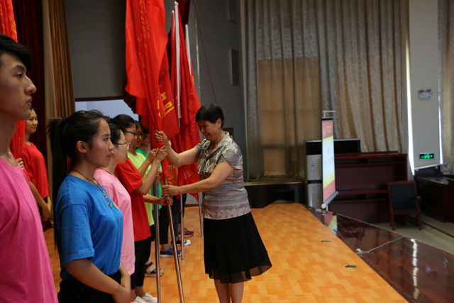 校长范素华为2016年暑期三下乡学生实践团队授旗