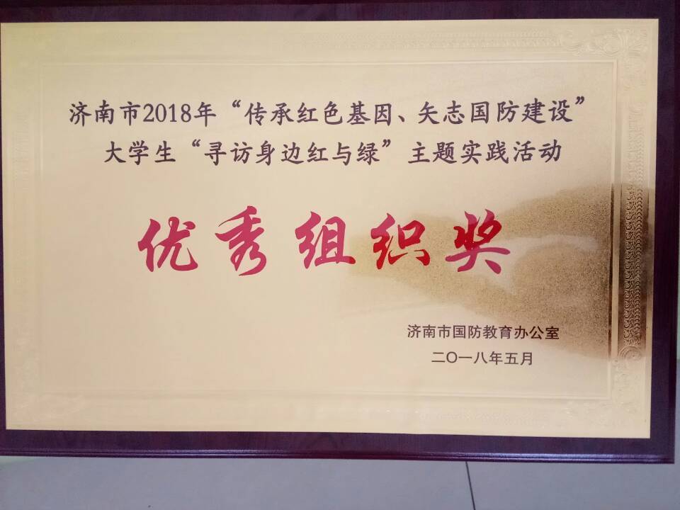 5月4日下午,由中共济南市委宣传部、济南市国教办等单位联合组织的2018年“泉城国防杯”驻济高校大学生演讲比赛在山东师范大学落下帷幕,我校文化传播学院郭红玉同学荣获三等奖,学校荣获“优秀组织奖”。