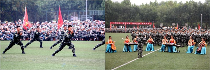 大会首先进行了隆重的升旗仪式,由优秀新生代表组成的英姿示范连承担了此次任务,在雄壮的国歌声中,五星红旗冉冉升起。分列式上,三十五个连队以响亮的口号、饱满的热情经过主席台,展现出女院学子自强不息、百折不挠的意志品质和求实创新、不断攀登的进取精神。英姿示范连带来的健康操表演,青春与激情舞动,活力与动感融合;男生连的军体拳表演身姿矫健,拳脚敏捷,动作整齐,沉着有力;礼仪操呈现着女院女性优雅端庄之仪态,仁义有礼之德行,文明修身之作为;《山东女子学院之歌》唱出了坤德含弘,薪火相传,至善尚美,孜孜不倦;教官带来的擒敌拳一招一式尽显威风,展示出军人的龙虎声威和铮铮铁骨。