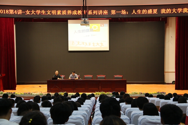 9月20日下午,由学生工作处、妇女研究与发展中心承办的“清照讲堂”2018第4讲——女大学生文明素质养成教育系列报告第一场在图书馆二楼报告厅举行。第一场报告由教育学院副院长王连森教授主讲《人生的盛夏:我的大学我做主》,全校近400名2018级新生聆听了此次报告。
