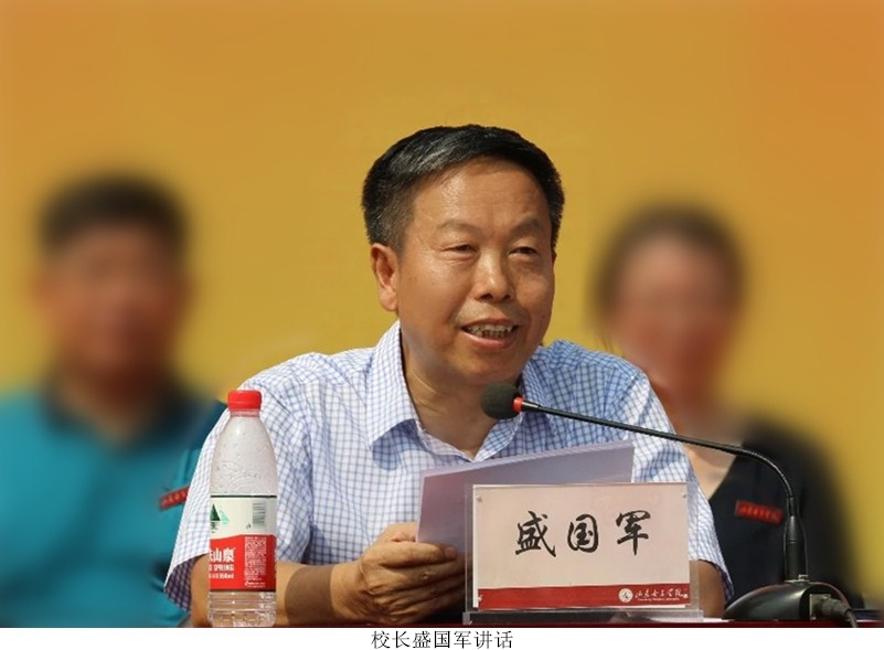 校长盛国军发表了热情洋溢的讲话。他首先代表学校向全体新同学表示热烈欢迎,向带领大家圆满完成军训任务的全体教官致以崇高的敬意和衷心的感谢,并向全体新同学提出了三点希望:一是希望大家牢记责任,与祖国共奋进。作为新时代的大学生,把自己的小我融入祖国的大我、人民的大我之中,与时代同步伐、与祖国共命运;二是希望大家勤奋努力,遵循学习之道。要牢记学习是学生的天职,把学习作为一种责任、一种精神追求、一种生活方式;三是希望大家修身立德,丰富人生的维度。要学会做人做事,学会情理兼修,学会更加自信地面对未来人生的各种挑战。在新中国成立70周年之际入学的2019级新同学,将与国家第二个百年奋斗目标相向而行,大家要夯实专业基础,孕育创新精神,涵养精神品格,去躬耕实践、追逐梦想,成为推动社会发展的中坚力量。