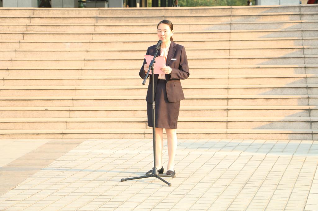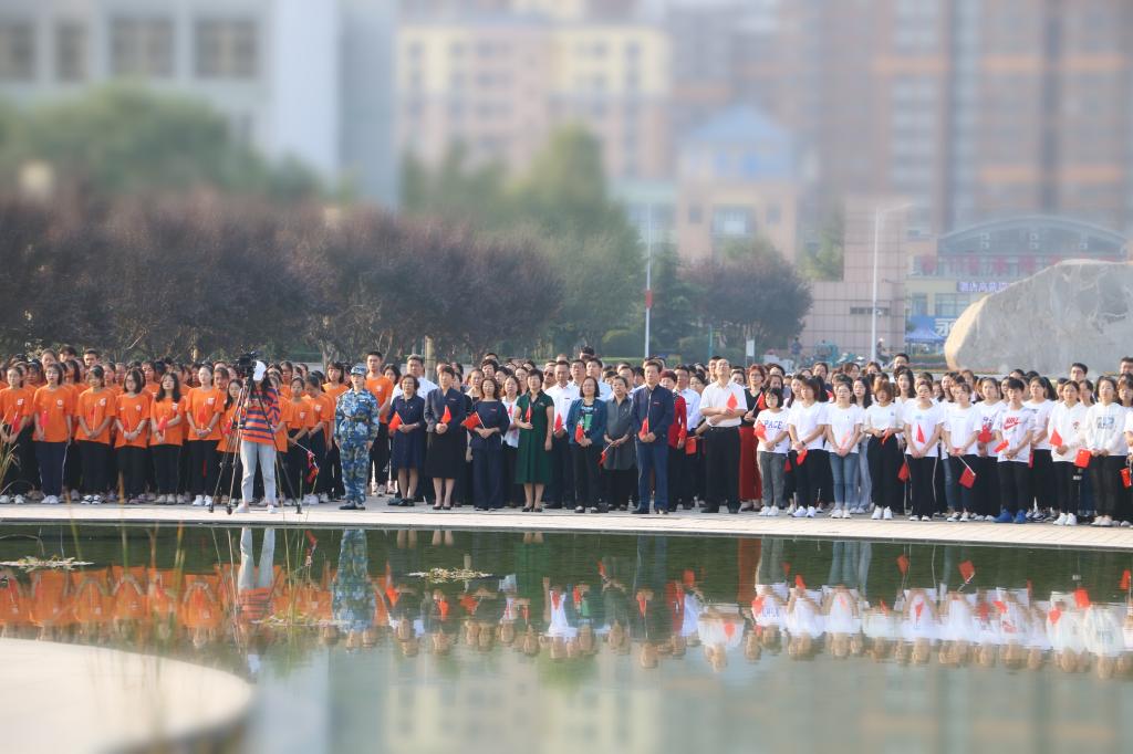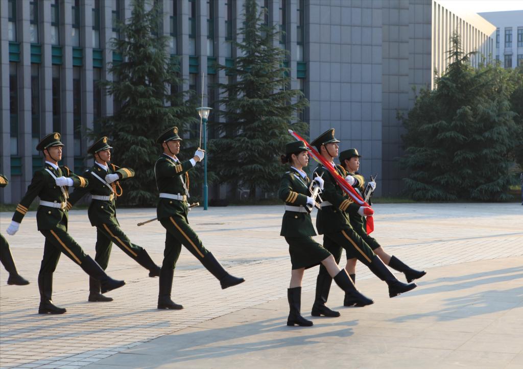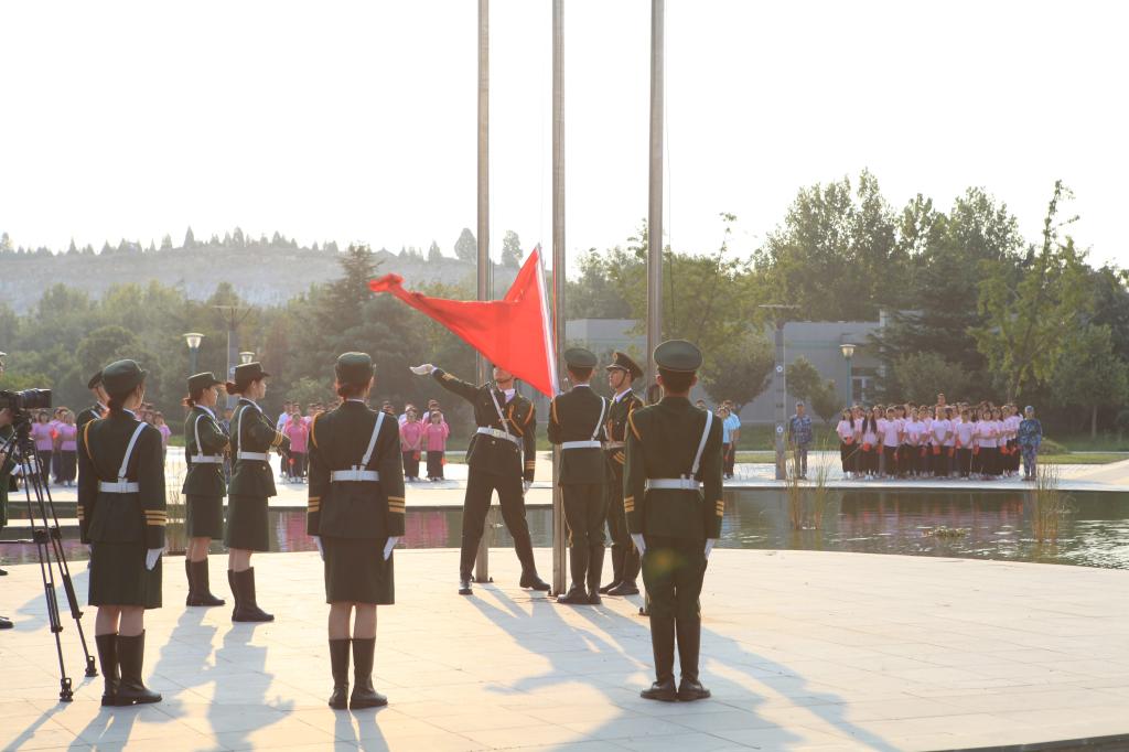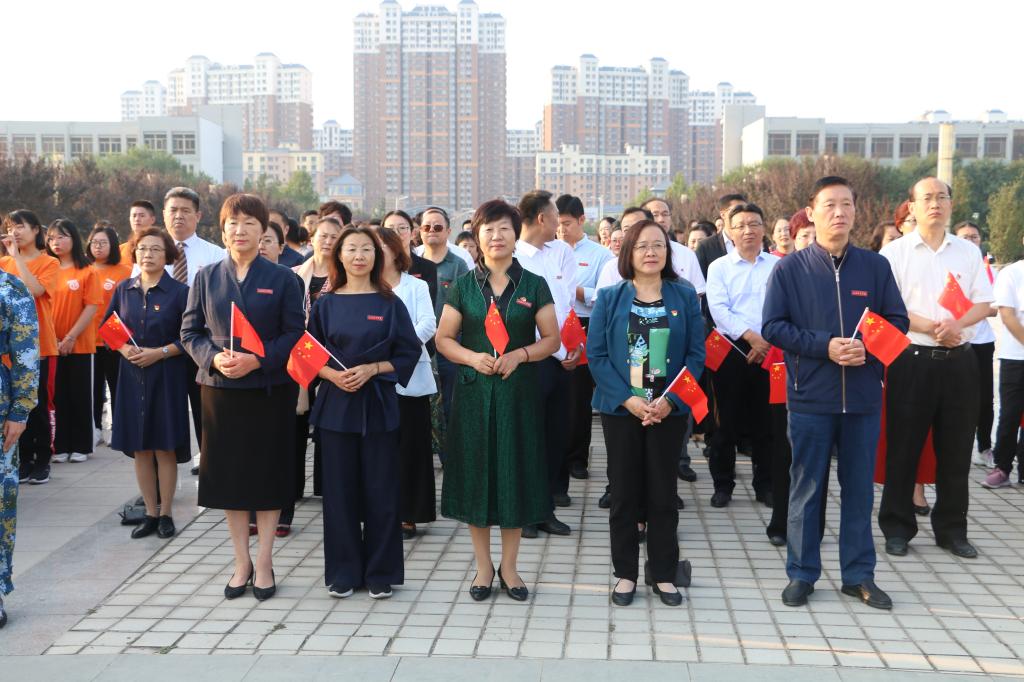 每个周一,女院的校园都会举行升国旗仪式。今天是9月30日,烈士纪念日;明天是10月1日,国庆日。清晨,伴随着初升的太阳,学校隆重举行以“拳拳报国志·深深爱国情”为主题的升旗仪式,热烈庆祝新中国成立70周年。党委书记郭翠芬、党委副书记王淑霞、副校长贺兴利、纪委书记黄晓彦、副校长侯素美出席,各部门、单位党政主要负责人,各学院分管学生工作副书记,全体辅导员以及各学院学生代表1200余人参加了本次活动。