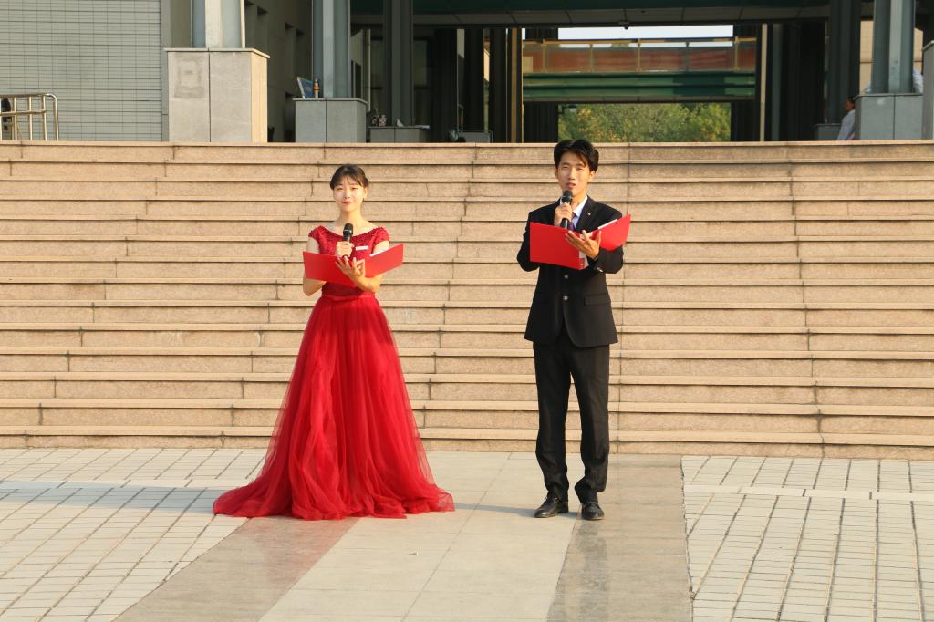 教育学院学生代表褚柯、高乾坤进行了题为《祖国在我心中,梦想从这里起航》的国旗下演讲,号召同学们既要坚定信念、仰望星空,又要脚踏实地,练好内功,牢记党的嘱托,担当起新时代青年的历史使命。