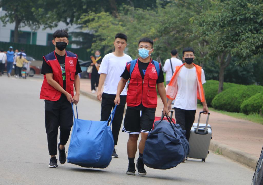 迎新期间,校园内随处可见一群志愿者的青春身影,他们为新生测温、指路,运送行李,志愿者们的一张张笑脸构成了校园里最美丽的一道风景线。散布校园各处的迎新服务点为新生们提供报到流程介绍、行李运送、临时休息、引路等一系列热情周到的服务。