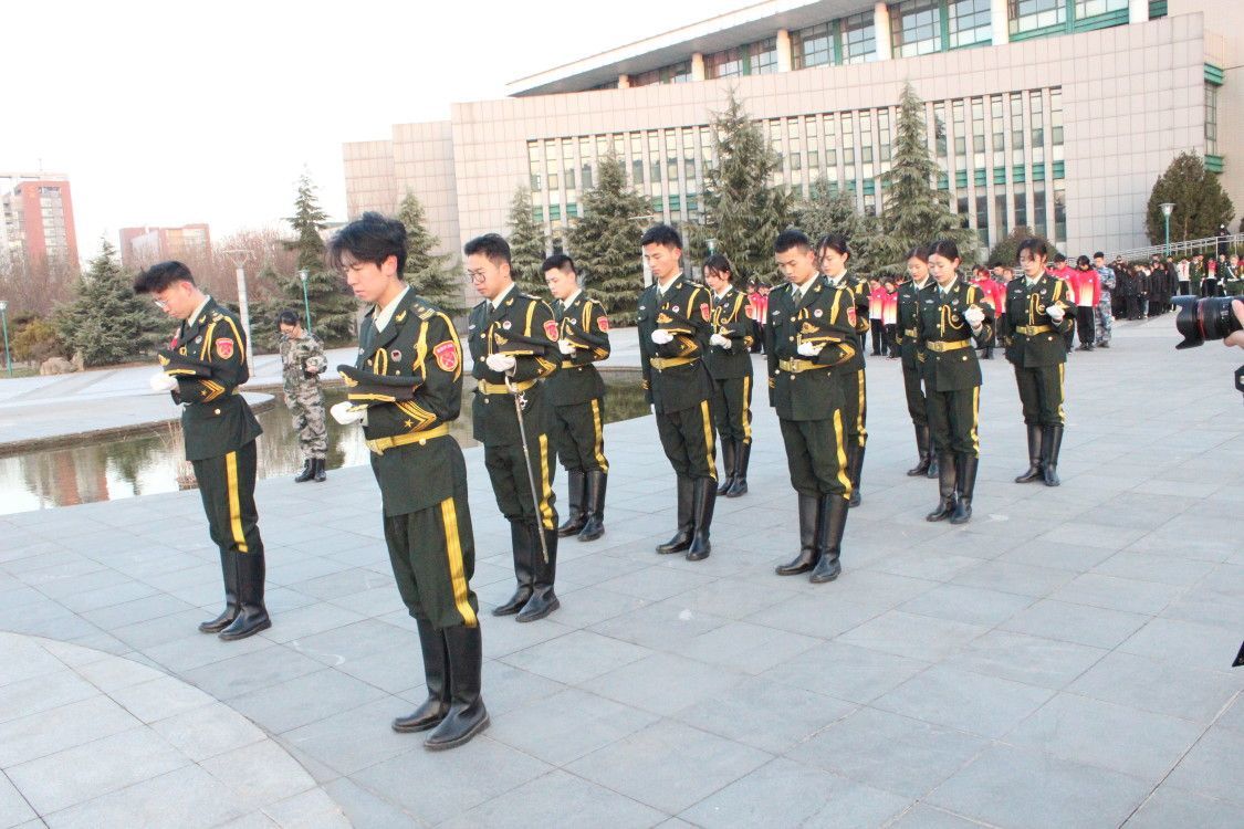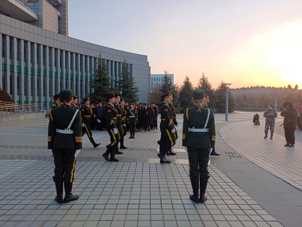 2020年12月13日早晨七时,山东女子学院英姿军事协会全体成员以及自发参与悼念活动的同学在图书馆南门集合,共同参加了此次国家公祭日主题升旗仪式。