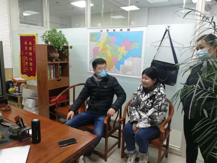 1月23日上午,辅导员鲁孔翟老师来到长清区龙泉大厦代表学院看望赵珊同学,并送上慰问品。赵珊同学的家在河北省邢台市南宫市,属于高风险地区。放假后,她收起无法回家过年的遗憾,振奋精神,转而投入到教育培训机构的实习当中。经了解,赵珊同学在实习单位表现优异,得到该单位负责人的高度评价。赵珊同学所在的实习单位不仅提供住宿,而且周边的生活条件也十分便利,让前来探望的老师放下了悬着的心。从安全出行到工作中遵守防疫的点点滴滴,临出门,鲁孔翟老师还一直嘱咐不停……浓浓师生情让冬日暖阳充满了热力。