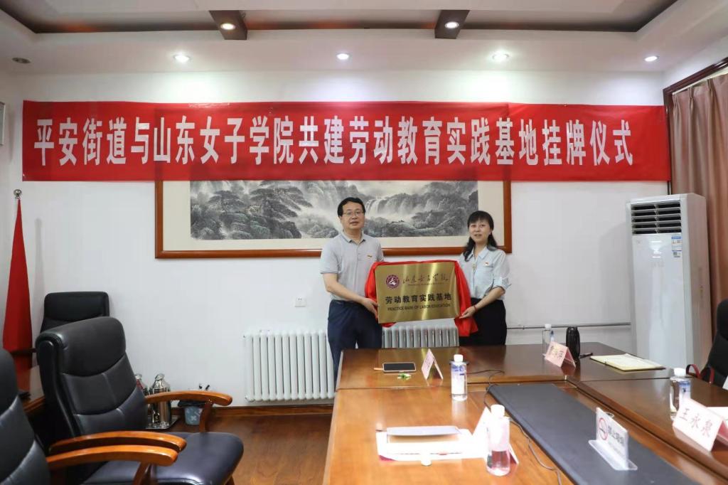 为深入深入推进学生劳动教育实践工作,7月8日上午,山东女子学院-济南市长清区平安街道劳动教育实践基地挂牌仪式在长清区平安街道办事处举行。平安街道党工委副书记、办事处主任李欣,山东女子学院学生工作处处长王永泉以及相关人员参与此次挂牌仪式。