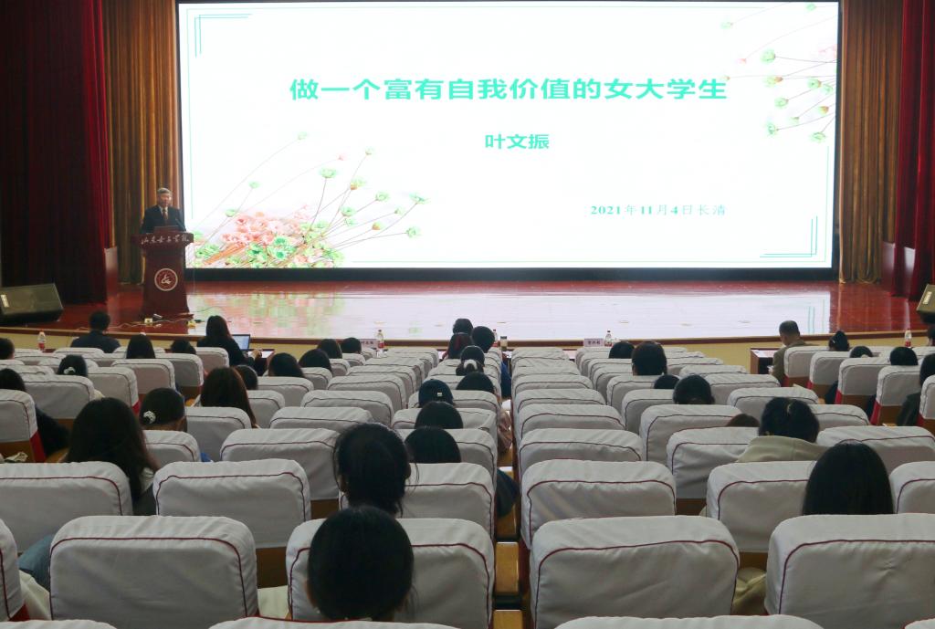捐赠仪式结束后,叶文振教授以《做一个富有自我价值的女大学生》为主题做学术讲座。他分别从女性自我价值的概念界定、女性自我价值的历史变迁、女性自我价值的实现途径三个维度,以自己两个女儿及中西方优秀女性的案例,讲述了为什么要做一个富有价值的女大学生以及如何做一个富有价值的女大学生,并对女大学生们提出了殷切的希望,希望女大学生们都能够成为自尊、自信、自立、自强的“四自”女性。