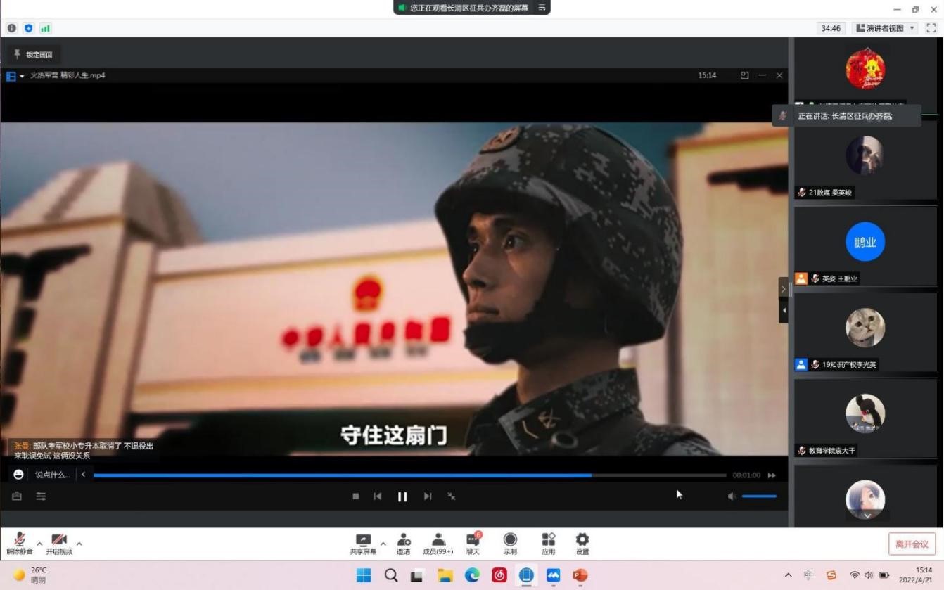 国无防不立,民无军不安,为帮助有志应征入伍的同学了解大学生征兵入伍优待政策,激发同学们应征入伍的热情,2022年4月21日,山东女子学院学生工作部(处)邀请长清区人武部军事科科长齐磊在线上举行征兵宣传讲座,本次讲座由学生工作部(处)负责人主持, 200余名毕业生参加。