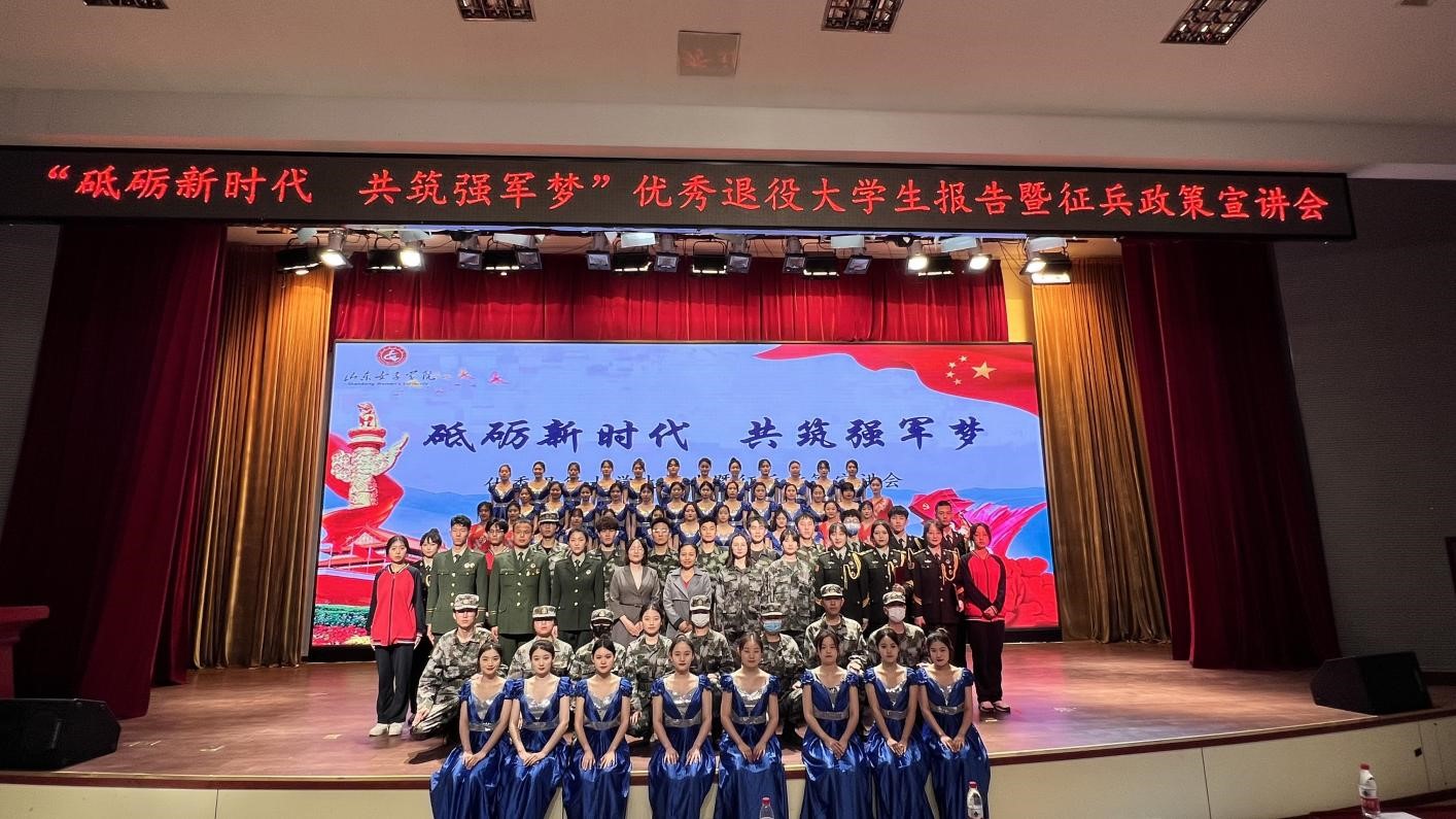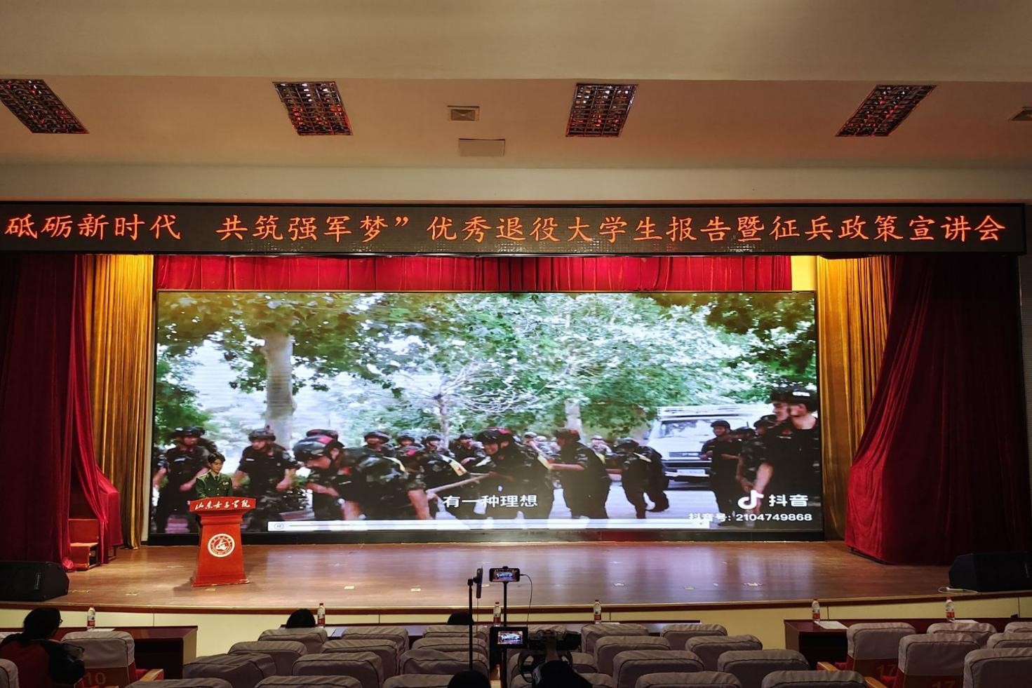 为加强大学生国防教育,促进我校学生全面了解应征入伍相关条件和政策,鼓励大学生积极参军入伍, 4月30日晚18:00在图书馆二楼报告厅召开“砥砺新时代,共筑强军梦”第二届退役大学生报告会暨征兵政策宣讲会,此次宣讲会学生工作部(处)、武装部负责人出席,为严格遵守防疫要求,设置了主会场和分会场,分会场为来自12个学院的学生,每个分会场控制人数在45人之内,共计600余名大学生了聆听了报告。