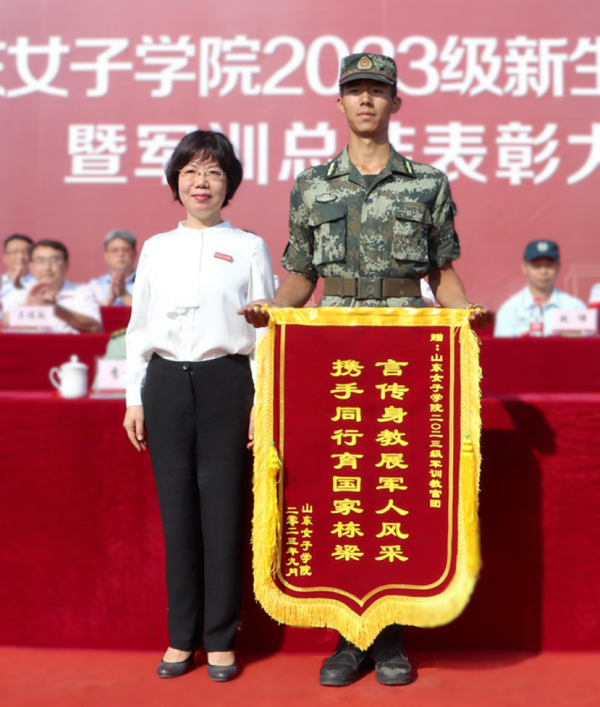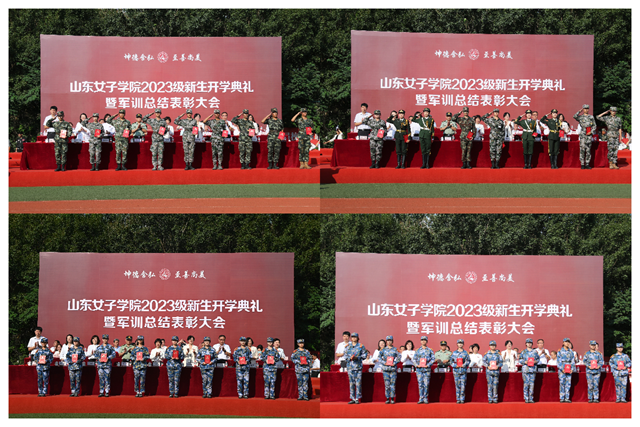 9月15日上午,山东女子学院2023级新生开学典礼暨军训总结表彰大会在田径场隆重举行。学校领导吕晓黎、李光红、龙希利、刘恩允、杨恩红、李缨、田立新出席大会,长清区人民武装部部长李京进应邀参会,相关职能部门负责人、各学院党政主要负责人及党委、党总支副书记、新生辅导员、教官和2023级全体新生参加了大会。大会由党委副书记龙希利主持。