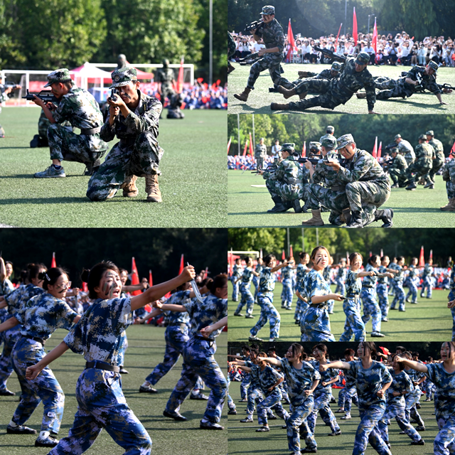 开学典礼在雄壮的国歌声中拉开帷幕。由2023级新生组成的40个连队方阵口号洪亮、步伐整齐、英姿勃发地依次经过主席台接受检阅。200名新生分别组成了擒敌拳、匕首操表演方队,他们摔擒合一、节奏分明、气宇轩昂、英姿飒爽,表现出新女院人“唯旗是夺、勇争第一”的精神风貌。