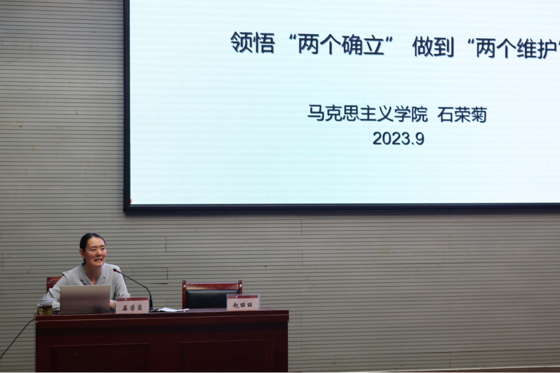 赵丽丽首先向全体学员介绍了“弘星计划”培训的整体情况,重点强调了学生干部的政治觉悟、能力素质在学校建设中的重要作用。随后石院长以《领悟“两个确立” 做到“两个维护”》为主题展开讲解,带领大家回顾了“两个确立”形成的过程,从四个角度正确理解“两个确立”,使学员们知其然而且知其所以然,从而更加自觉地做到“两个维护”。她强调,党和国家事业的希望寄托在青年身上,班长作为班集体的中坚力量,在引领班级思想政治教育、班风学风建设中要发挥重要作用,必须要带头讲政治。