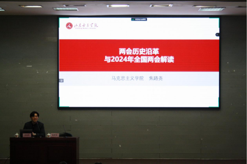 学习两会精神,争做奋进青年。焦路尧老师以《两会历史沿革与2024年全国两会解读 》为主题进行培训,他从同学们感兴趣的两会代表入手深入讲解两会的历史沿革,重点解读了“新质生产力”“全面深化改革”和“文化传承与发展”三个两会关键词,并围绕2024年政府工作报告中“国内生产总值预计增长”“城镇新增就业”和“高等教育综合改革试点”的相关内容进行了深入分析。
