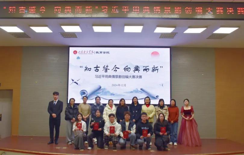 为深刻认识习近平总书记用典的价值意蕴,促进广大师生学经典、用经典,12月19日下午,学生工作处和教育学院共同举办“知古鉴今,向典而新”习近平用典情景剧创编大赛。教育学院党委副书记路敏、学生工作处于杨、音乐学院教师李金叡及各学院辅导员老师担任评委。