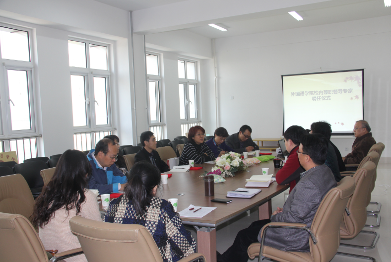 为全面提高教学质量,进一步加强教风学风建设,外国语学院于2015年10月28日下午2点在4号教学楼403室举行了校内兼职督导专家聘任仪式。受聘的六位校内兼职督导专家、教务处副处长赵小敏、外国语学院领导班子以及外国语学院督导员参加了仪式。