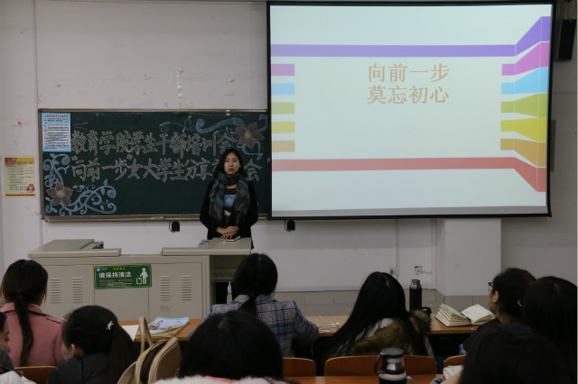 12月17日晚7点教育学院于2号教学楼208教室召开学生干部培训会暨“向前一步”女大学生分享交流会。会议由学生会主席王晓明主持,团总支学生会自律会全体成员参加本次交流会。