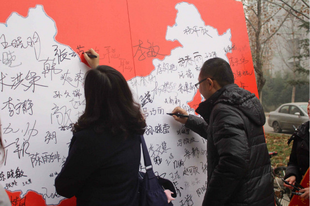 10日上午,教育学院师生于1号教学楼前举办了“众志成城 ‘名’记历史”签名活动、南京大屠杀图片展活动。南京沦陷、一二九运动、珍爱和平等主题图片凸显了日本侵略者的残暴兽性和世界和平正义的力量,全院学生怀着爱国之心踊跃参与签名活动,字字都凝集着对祖国的热爱。当镶嵌着白色中国地图的红色展板被同学们的名字布满,彰显的不仅是共同捍卫祖国领土的爱国情怀,更是中国新一代年轻人齐心协力、奉献祖国的决心。
