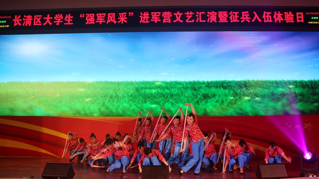 6月23日上午,由长清区武装部和驻长清某部队联合举办的以“强军路上斗志扬•无悔青春献国防”为主题的进军营文艺汇演暨征兵入伍体验日活动在驻长清某部队举行。参加本次活动的有部队领导、各高校代表以及官兵战士和学生代表。本次文艺汇演共有6所高校和某部队选送的13个节目,其中包括我校选送的《唱支山歌给党听》、《八女投江》、《千丝万缕一片情》三个节目。
