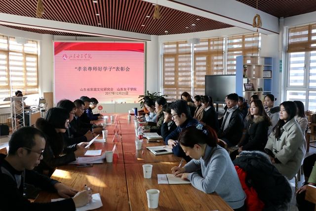 会上,对评选出的“孝亲尊师好学子”进行了表彰。山东省家庭文化研究会会长王君峰和学生工作处负责人在讲话中表达对获奖学生的祝贺,阐释了本次活动的重要意义,充分肯定了我校多年来开展的“微孝传爱”活动的成效,也对今后工作提出了希望和要求。教育学院赵斐、文化传播学院杨洁作为获奖学生代表发言。