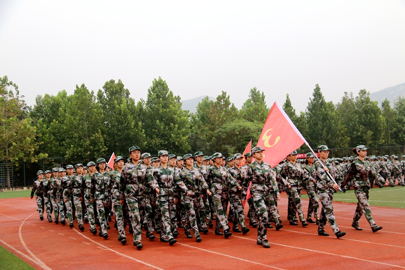 大会首先进行了隆重的升旗仪式,由优秀新生代表组成的英姿示范连承担了此次任务,在雄壮的国歌声中,五星红旗冉冉升起。分列式上,三十五个连队以响亮的口号、饱满的热情经过主席台,展现出女院学子自强不息、百折不挠的意志品质和求实创新、不断攀登的进取精神。英姿示范连带来的健康操表演,青春与激情舞动,活力与动感融合;男生连的军体拳表演身姿矫健,拳脚敏捷,动作整齐,沉着有力;礼仪操呈现着女院女性优雅端庄之仪态,仁义有礼之德行,文明修身之作为;《山东女子学院之歌》唱出了坤德含弘,薪火相传,至善尚美,孜孜不倦;教官带来的擒敌拳一招一式尽显威风,展示出军人的龙虎声威和铮铮铁骨。