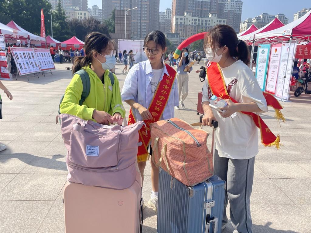 工商管理学院退役军人新生祝贺同学说:“在步入山东女子学院的第一时间,便有两名退伍的战友热心的接过了我手中的行李,带领着我走进了美丽校园。在接下来的时光里,我将不断提高自身素质,发挥“退伍不褪色”的精神。”社会与法学院的2022级新生李宪鹏同学说:“热情的学长学姐帮我拿着行李,一路上无微不至的嘱咐与耐心细致的解答让我备受感染。接下来的大学生活我要努力奋斗,做到今日我以女院为荣,明日女院以我为傲!”