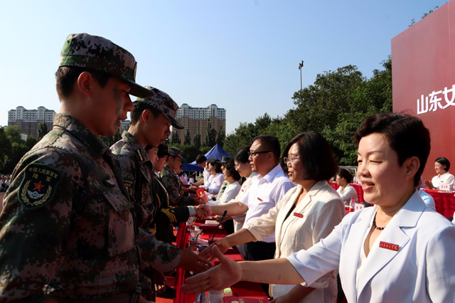 9月15日上午,山东女子学院2023级新生开学典礼暨军训总结表彰大会在田径场隆重举行。学校领导吕晓黎、李光红、龙希利、刘恩允、杨恩红、李缨、田立新出席大会,长清区人民武装部部长李京进应邀参会,相关职能部门负责人、各学院党政主要负责人及党委、党总支副书记、新生辅导员、教官和2023级全体新生参加了大会。大会由党委副书记龙希利主持。