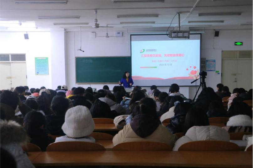 王淑荣主任以《汇聚青春正能量,无偿献血传爱心》为主题展开讲解,普及无偿献血的理念,从什么是无偿献血、无偿献血的重要意义、献血安全、献血后多长时间恢复、献血的流程、献血前后注意事项、献血者享有的权利等方面进行讲解。