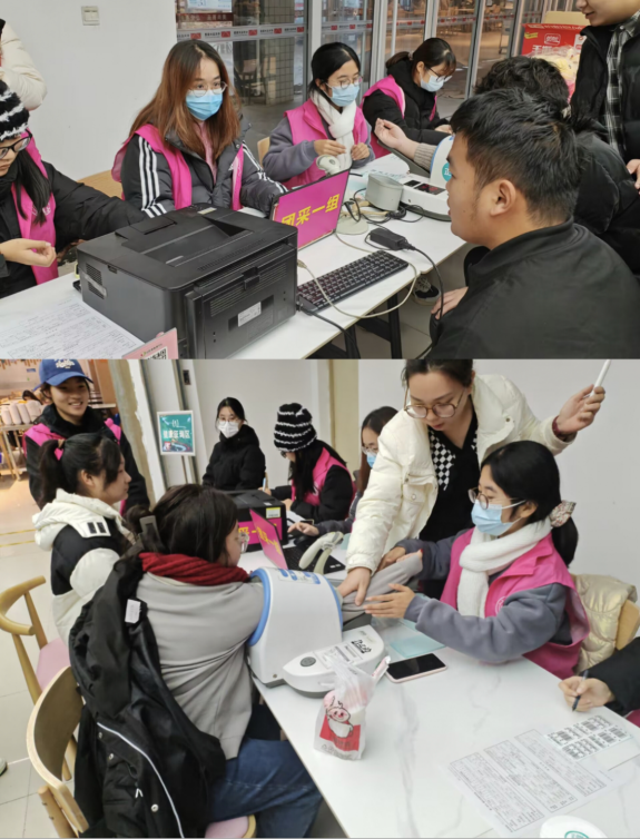 活动现场,志愿者们分工协作,每天轮流为前来献血的教师、同学们提供服务和帮助。一个个“粉马甲”穿梭在车上车下献血人群中,耐心宣传讲解献血知识及献血前中后注意事项,同时为献血后的同学们发放纪念品等服务。