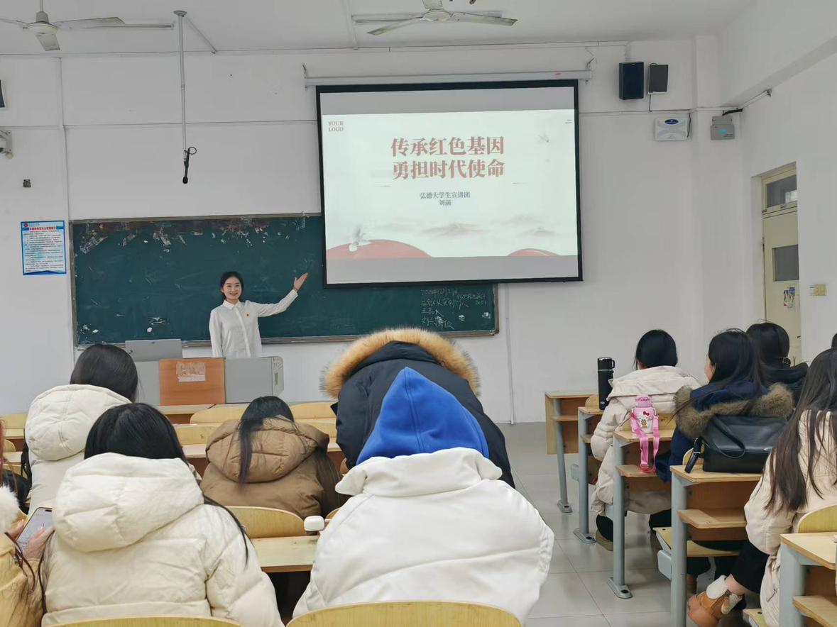 为深入贯彻落实立德树人根本任务,厚植学生爱党爱国情怀,激发青年学子的时代担当,推动红色文化在校园中传承与发展,近日,弘德大学生宣讲团在教育学院举办了一场意义深远的宣讲活动。教育学院学生代表积极参与,共同聆听红色之声,汲取奋进力量。