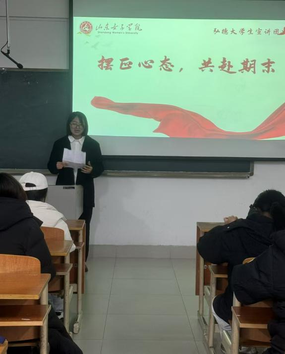期末将至,为激励学生以平和稳定的心态和饱满的精神状态投入到期末复习与考试,近日弘德大学生宣讲团成员主持了一场有关“期末之战,已经打响”为主题的宣讲。