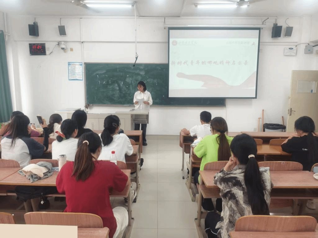 宣讲会上,孙丽、贾乐从电影《哪吒之魔童闹海》切入。哪吒虽被视作“魔丸”,饱受误解,却以“我命由我不由天”抗争命运。类比到大学生活,大家也会面临课业、规划等难题,需学哪吒坚守信念、直面挑战。初入大学时,外界质疑如影随形,正如哪吒被贴“妖怪”标签,可他用行动证明自我设限才是束缚,我们也应打破认知局限。