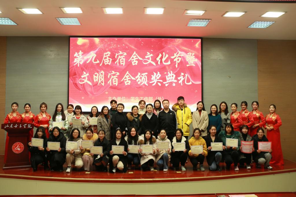12月19日下午,山东女子学院第九届宿舍文化节暨文明宿舍颁奖典礼在图书馆一楼报告厅举行。学生工作处相关人员、各学院分管公寓工作的辅导员以及受表彰的个人和集体共同出席了颁奖典礼。
