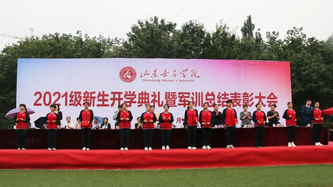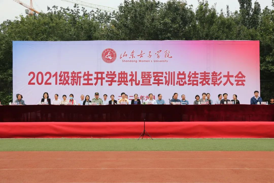 金风玉露,秋意昂扬。2021年9月18日上午,山东女子学院2021级新生开学典礼暨军训总结表彰大会在田径场隆重举行。学校领导郭翠芬、盛国军、贺兴利、黄晓彦、侯素美、刘恩允等出席大会,长清武装部部长李京进应邀参会,各二级学院、相关职能部门负责人、学工办主任、新生辅导员、军训教官、2021级全体新生参加了大会。大会由党委委员、副院长侯素美主持。