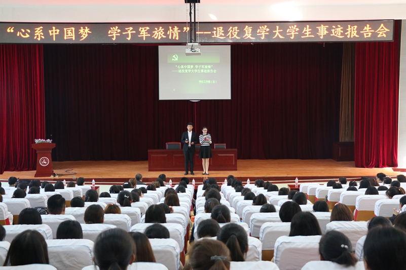 此次报告会是我校开展的“家国情怀”主题教育的重要活动,充分发挥了优秀大学生士兵先进典型的示范引领作用,为广大青年学生成长成才树立了榜样,使同学们深受震撼和鼓舞,大家纷纷表示要更加坚定理想信念,将爱国之心化为报国之行,将强军之梦化为脚踏实地的奋斗,在实现“中国梦”的生动实践中放飞青春梦想,在为人民利益的不懈奋斗中书写人生华章!