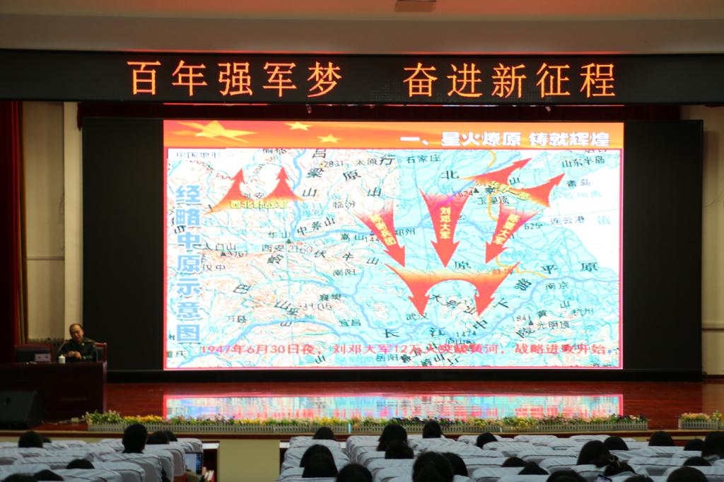 刘鹏教授从星火燎原铸就辉煌、巩固国防坚强军队、改革开放富国强军、铸魂砺剑聚焦打赢四个方面讲述了人民军队在中国共产党的领导下的光辉历程及取得的辉煌成就,勉励同学们要居安思危,深刻认识加强国防建设的重要性。