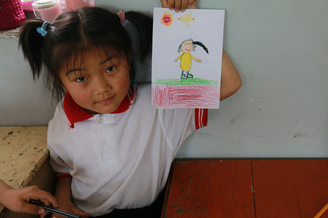 活动后期,围绕“感恩”这个主题志愿者们精心设计了游戏“感恩的心”,孩子们按照志愿者的指示独立完成带有自己父母形象的两幅画。伴着轻柔的音乐,孩子们用稚嫩的小手画下了他们记忆中的父母,并认真分享了他们想要对父母说的话,“爸爸妈妈我爱你们”、“我想你们了”、“你们辛苦了”一句句哽咽的话语,一双双带泪的眼眸都让志愿者们感受到了来自留守儿童的那份思念父母的心情。