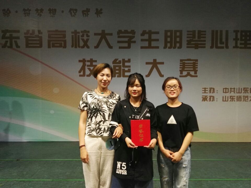 5月23日,由山东省委高校工委主办的大学生朋辈心理辅导技能大赛在济南圆满结束。由我校教育学院王晓明、王彩霞、陆玥组成的参赛队在比赛中表现突出,荣获二等奖。