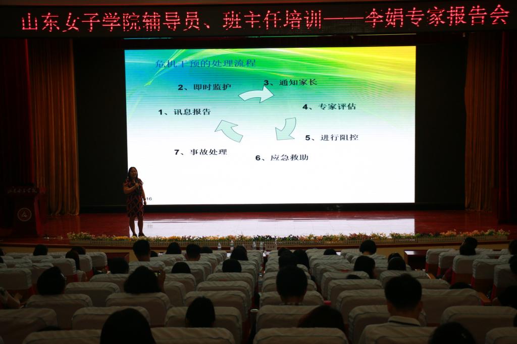 本次报告会邀请山东大学(青岛)心理健康教育与咨询中心主任李娟博士主讲。李娟博士从事心理咨询工作二十年,咨询个案3000余例。她以“生命第一 协同干预”为主题,从大学生常见心理危机的识别、危机干预的工作流程、危机干预者的情绪管理、危机干预的注意事项四个方面为辅导员讲解了大学生心理危机干预实务。其中,辅导员心理危机干预工作标准用语20则凝结了李娟博士多年的心理危机干预案例的经验,以点带面,有理论,有实务,为工作在一线的辅导员、班主任提供了专业参考,解答了大家在大学生心理健康教育中的困惑和疑问。